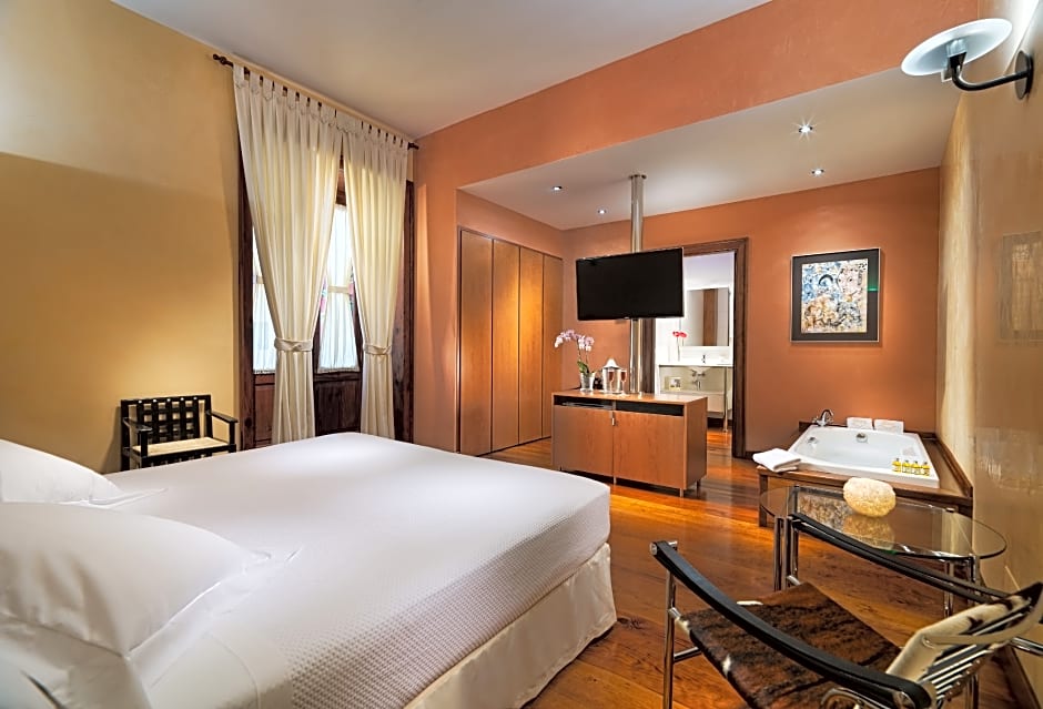 The hot tub is the standout feature of this single room. Offering free toiletries and bathrobes, this single room includes a private bathroom with a bath, a hairdryer and slippers. The single room has parquet floors, a seating area with a flat-screen TV with cable channels, air conditioning, soundproof walls, as well as a mini-bar. The unit has 1 bed.
